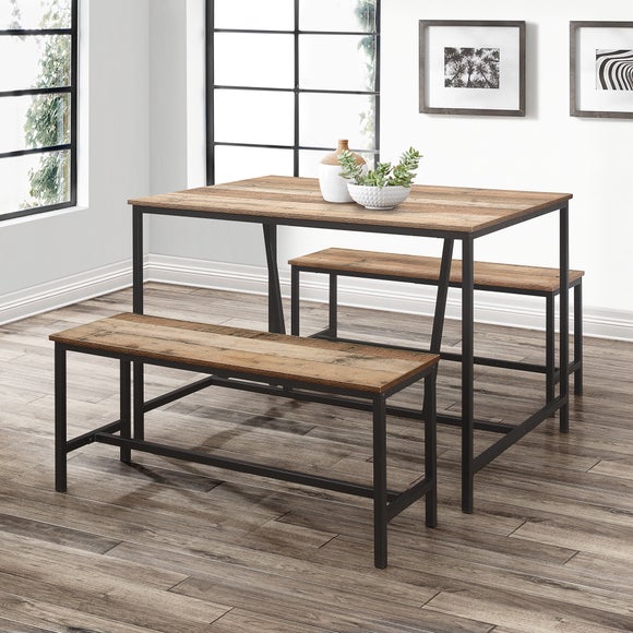 Industrial rustic dining table optional benches solid wood metal tube u frame legs kitchen table size colour set options available handmade in. Rustic dining table with bench. Comfy, cozy, and full of charm, rustic farmhouse style is more popular than ever. Pair this gorgeous, extendable table with bench seating to get the full casual, country look. You can fold or spread the leaves anytime you want.